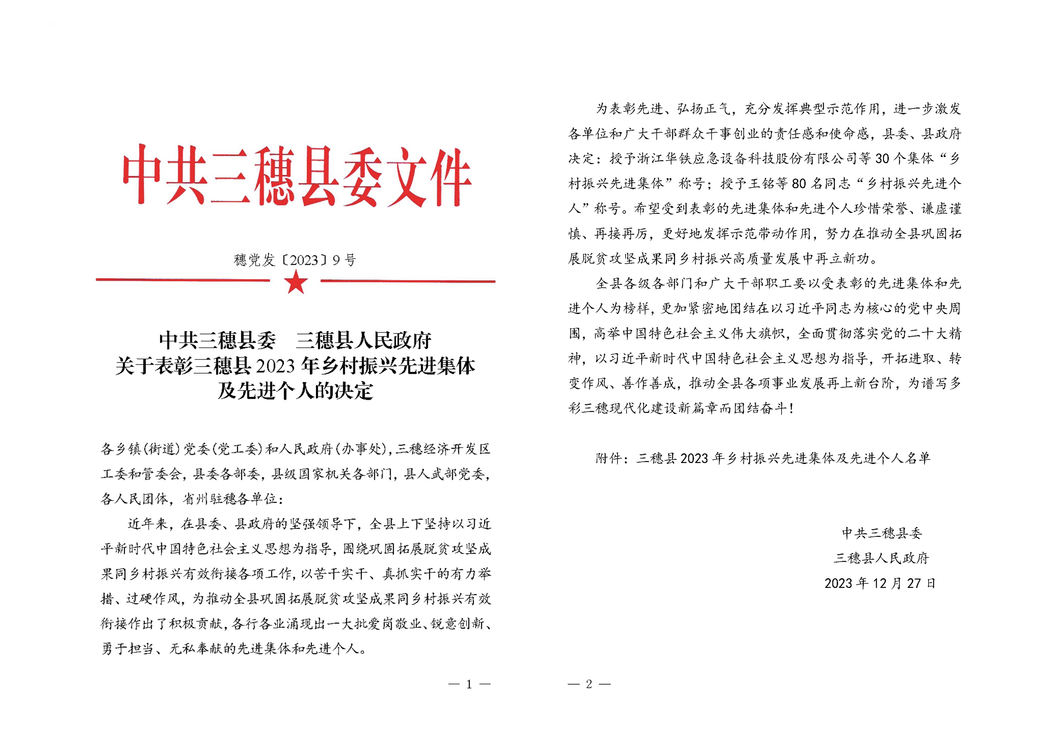 喜报!拜特科技荣获“三穗县2023年乡村振兴先进集体”称号