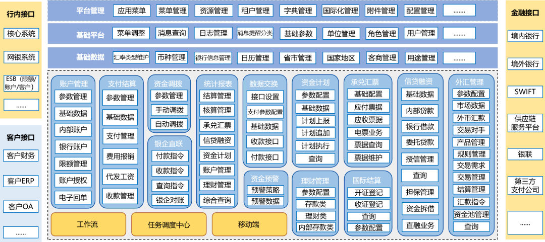 以下为商业银行“云财资系统”整体功能架构规划: